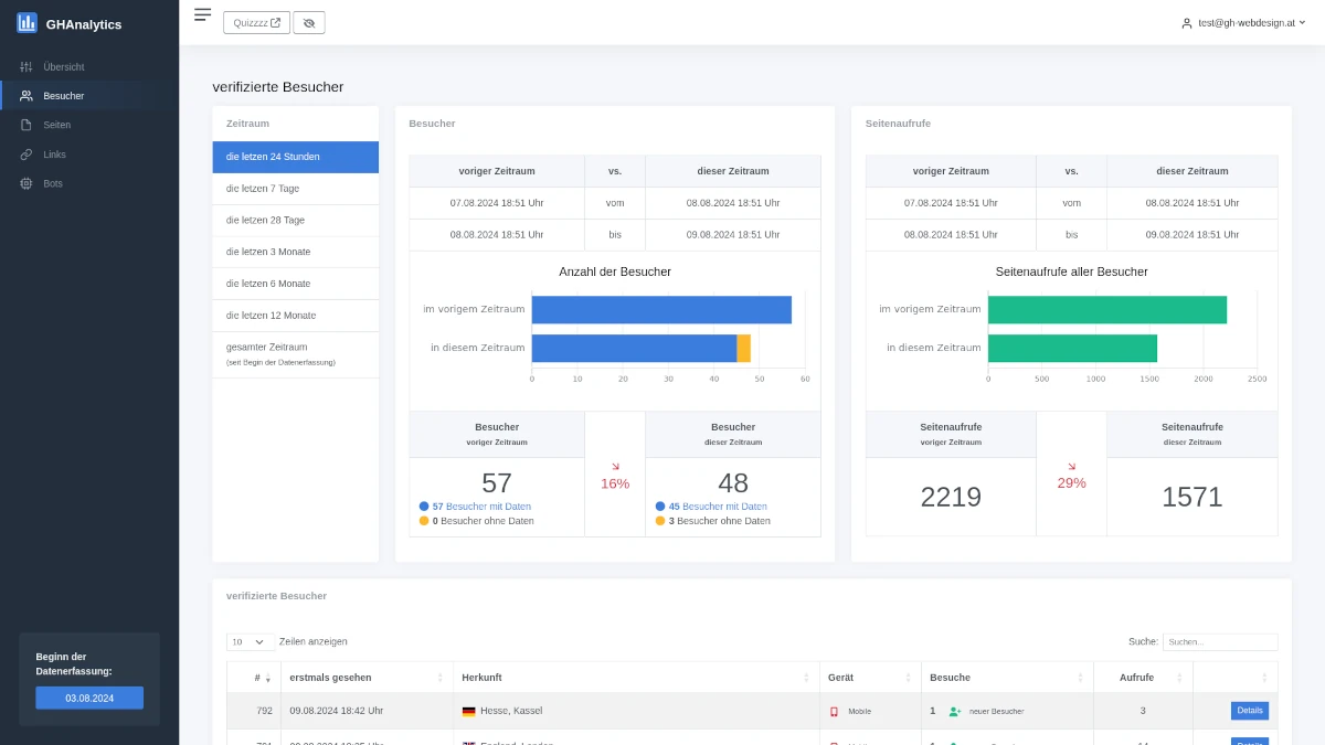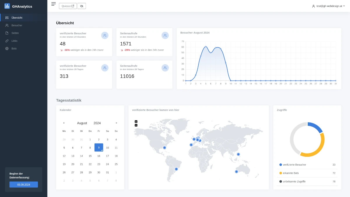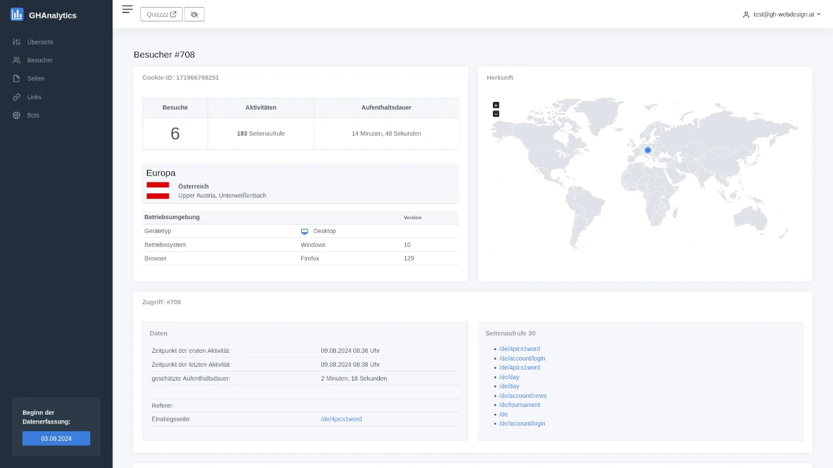 Obige Screenshots stammen von der Besucheranalyse von quizzzz.net .